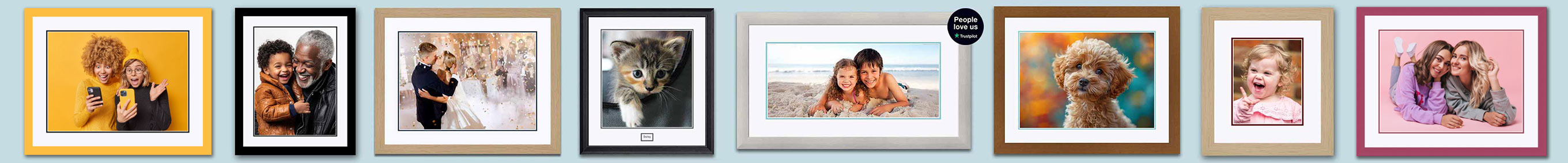 We offer a wide range of custom sizes for photo framing, from small to large framed photos. Square frames, landscape, and portrait orientations are all available.